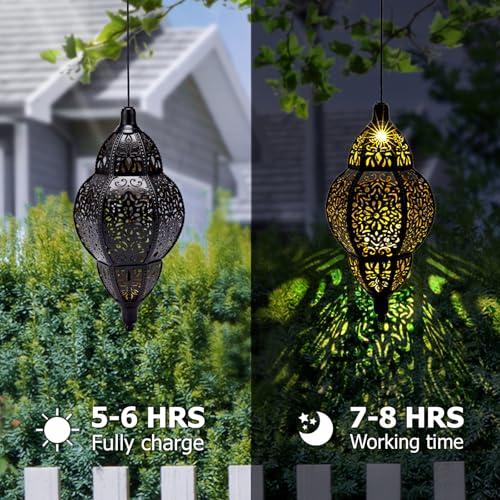 AIINY Hanging Solar Lantern Outdoor Decor, Moroccan Lights for Outside Garden Decorations, Waterproof Lanterns Garden Gifts for Mom, Women, Patio, Yard Ornament